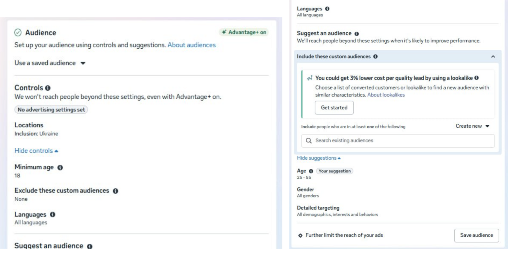 - Используется Advantage+ (алгоритм сам расширяет охват)