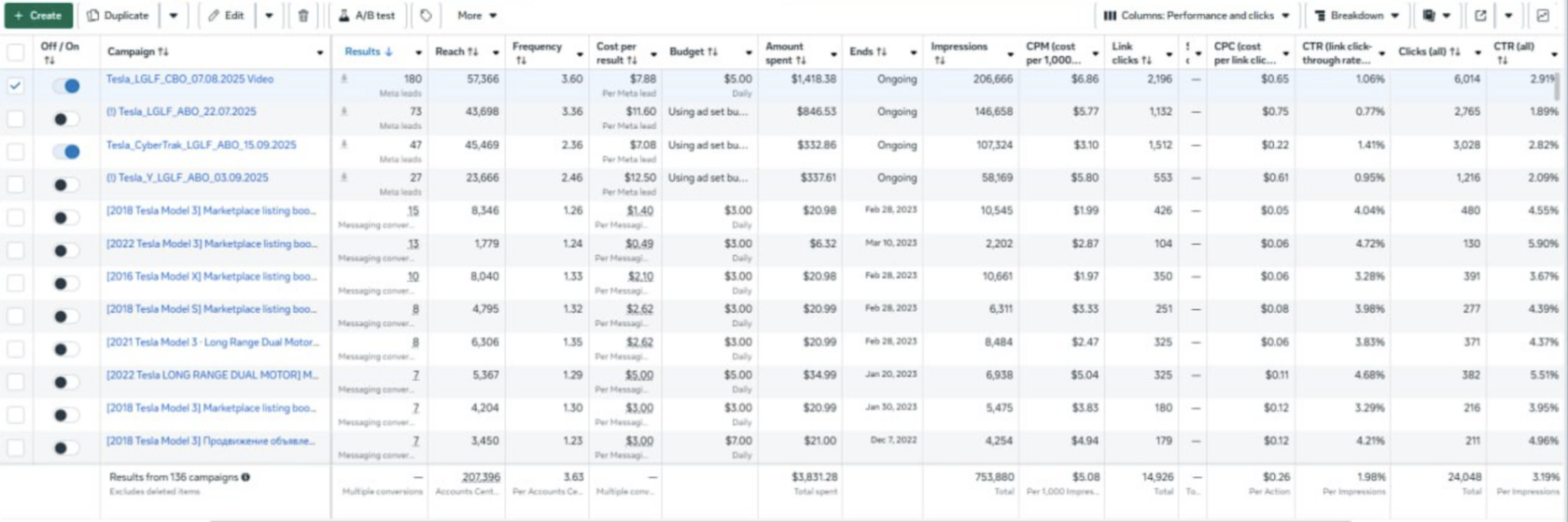 - Запустили кампании на лиды и Advantage+