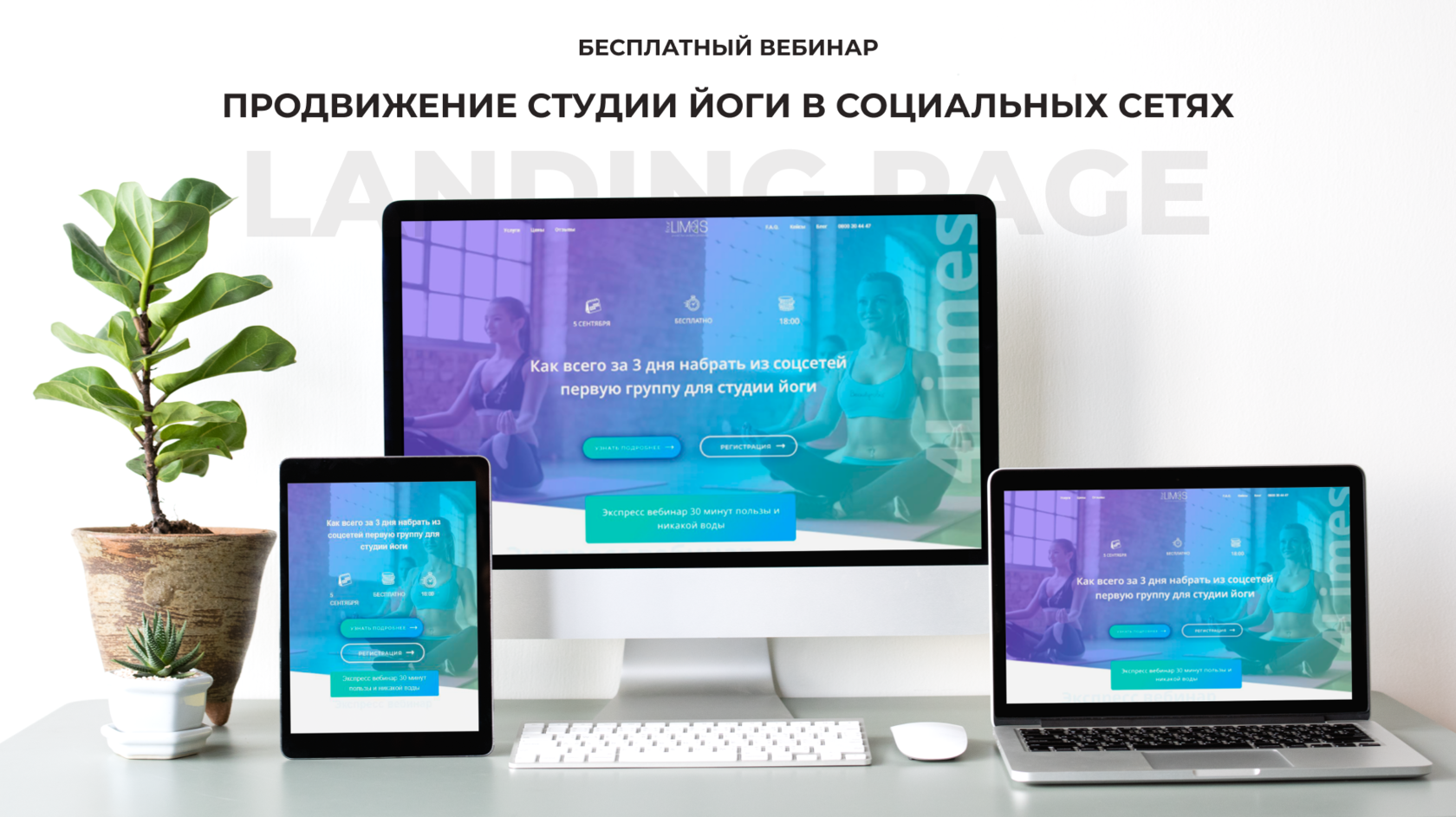 Данный вебинар был посвящен продвижению студии йоги в соцсетях. В этом проекте требовалось реализовать задачу по созданию удобного и информативного сайта. Также командой было предложено разработать уникальный дизайн сайта, который бы соответствовал теме вебинара. Такой шаг поможет зацепить целевую аудиторию и сформировать их доверие к компании.