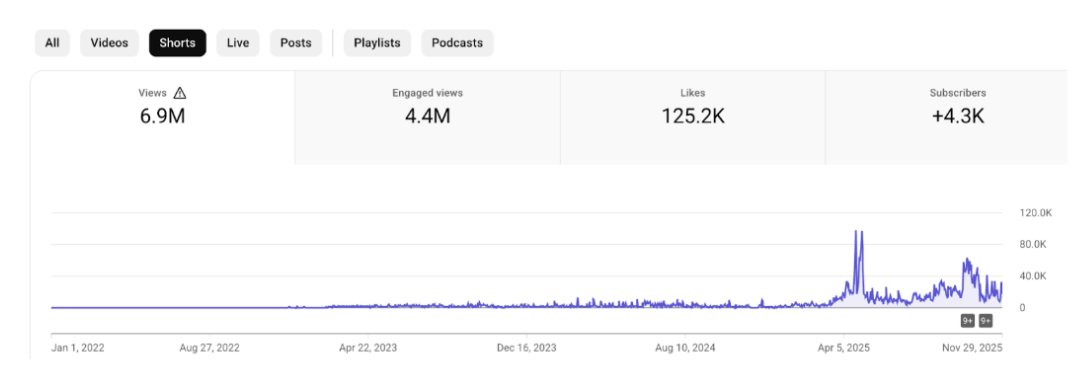 Shorts: 6.9M просмотров, +4.3K подписчиков