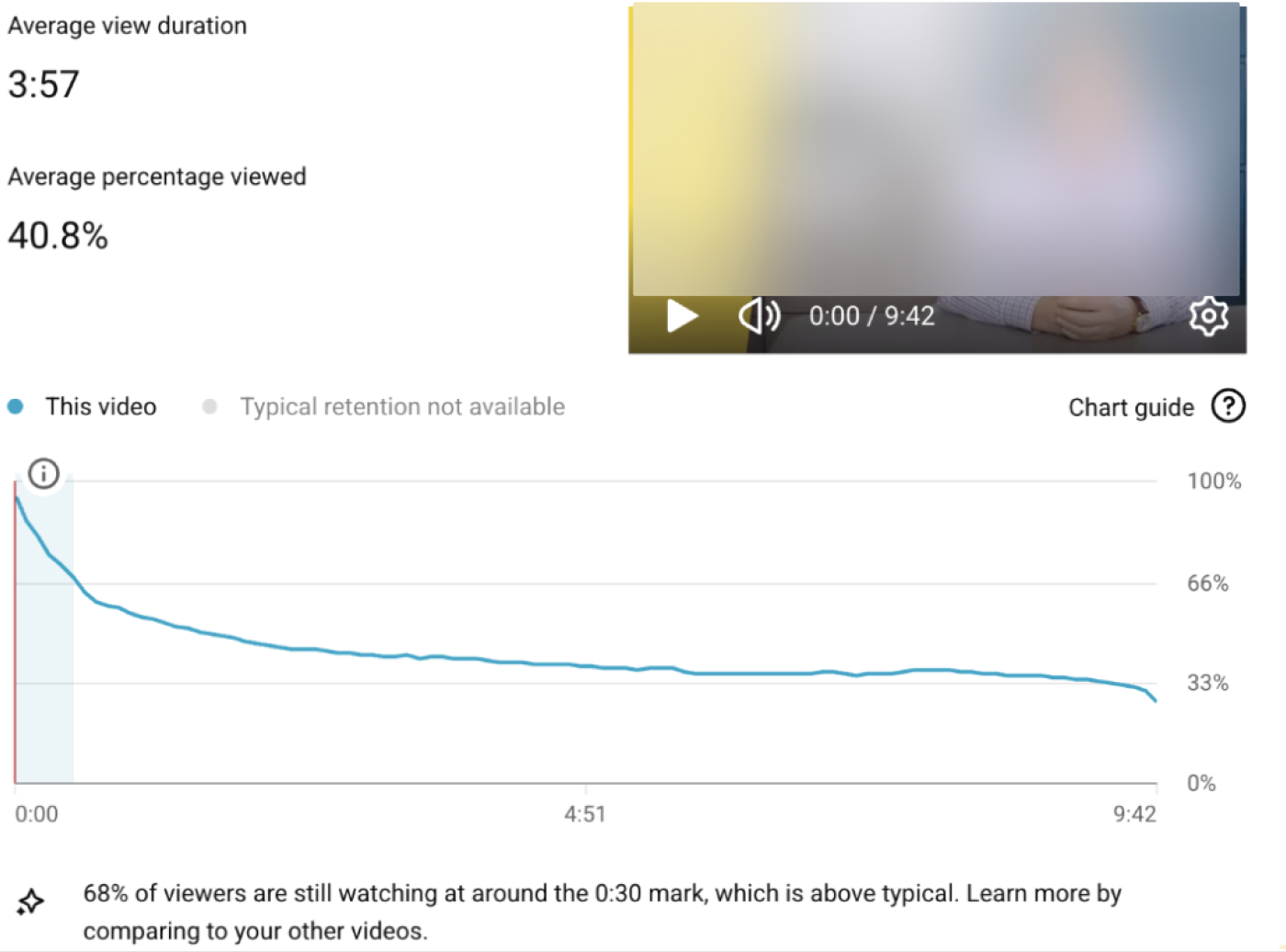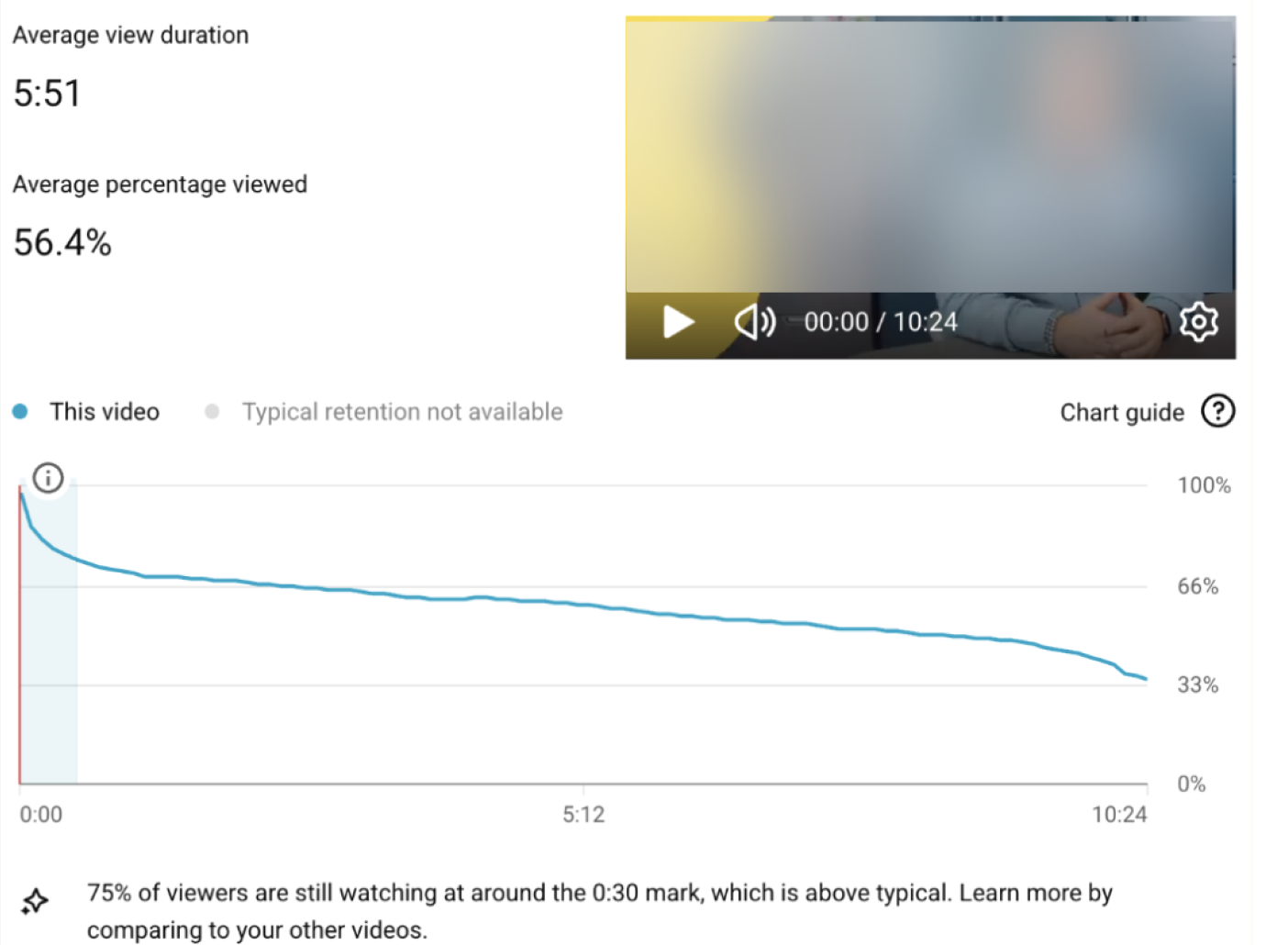 Среднее удержание 15:31 - в бизнес-контенте это высокий показатель