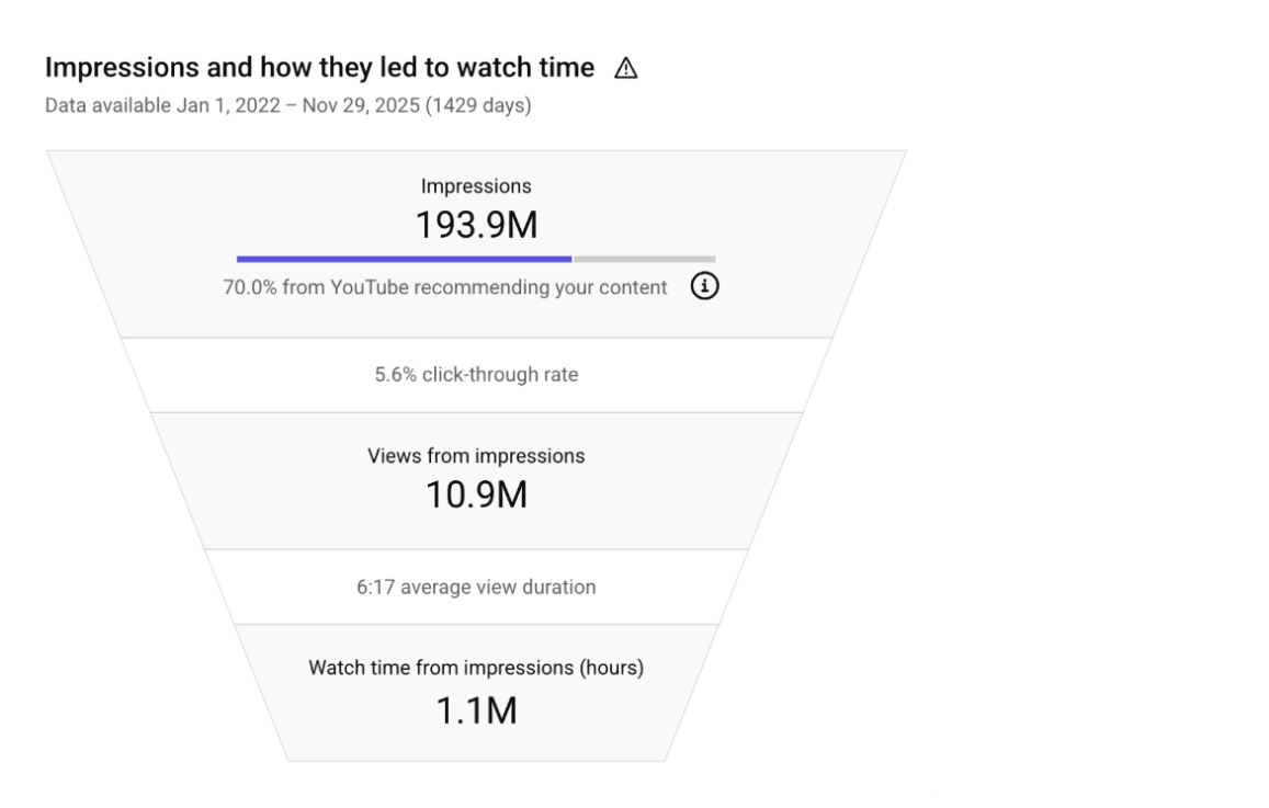 YouTube выполнял функцию «разогревающего ядра»: человек смотрит обучающий контент → попадает на лид-магнит → доходит до продажи high-ticket-продуктов (обучение 4–18k$, внедрение от 10k$).