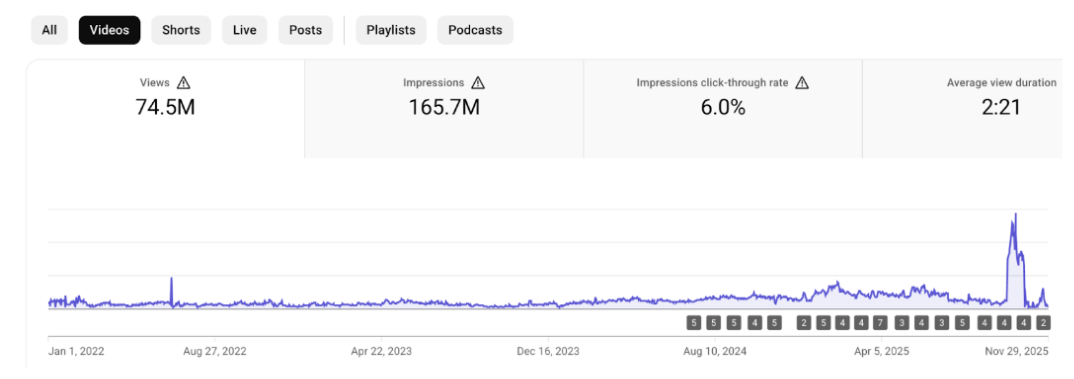 74,5 миллиона просмотров - длинные видео