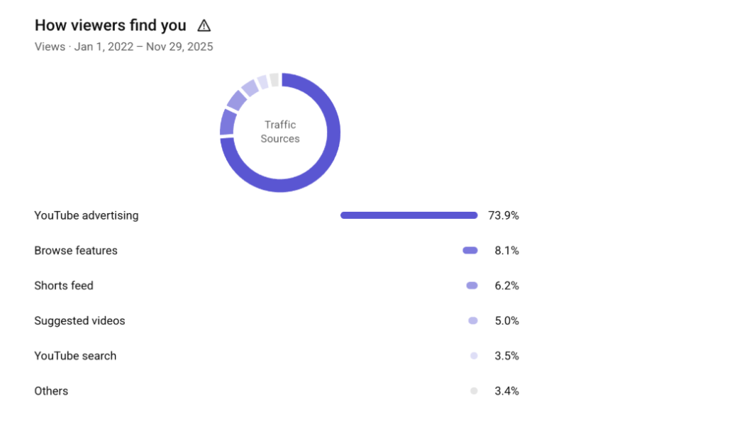 - Основной массив трафика — реклама YouTube Ads