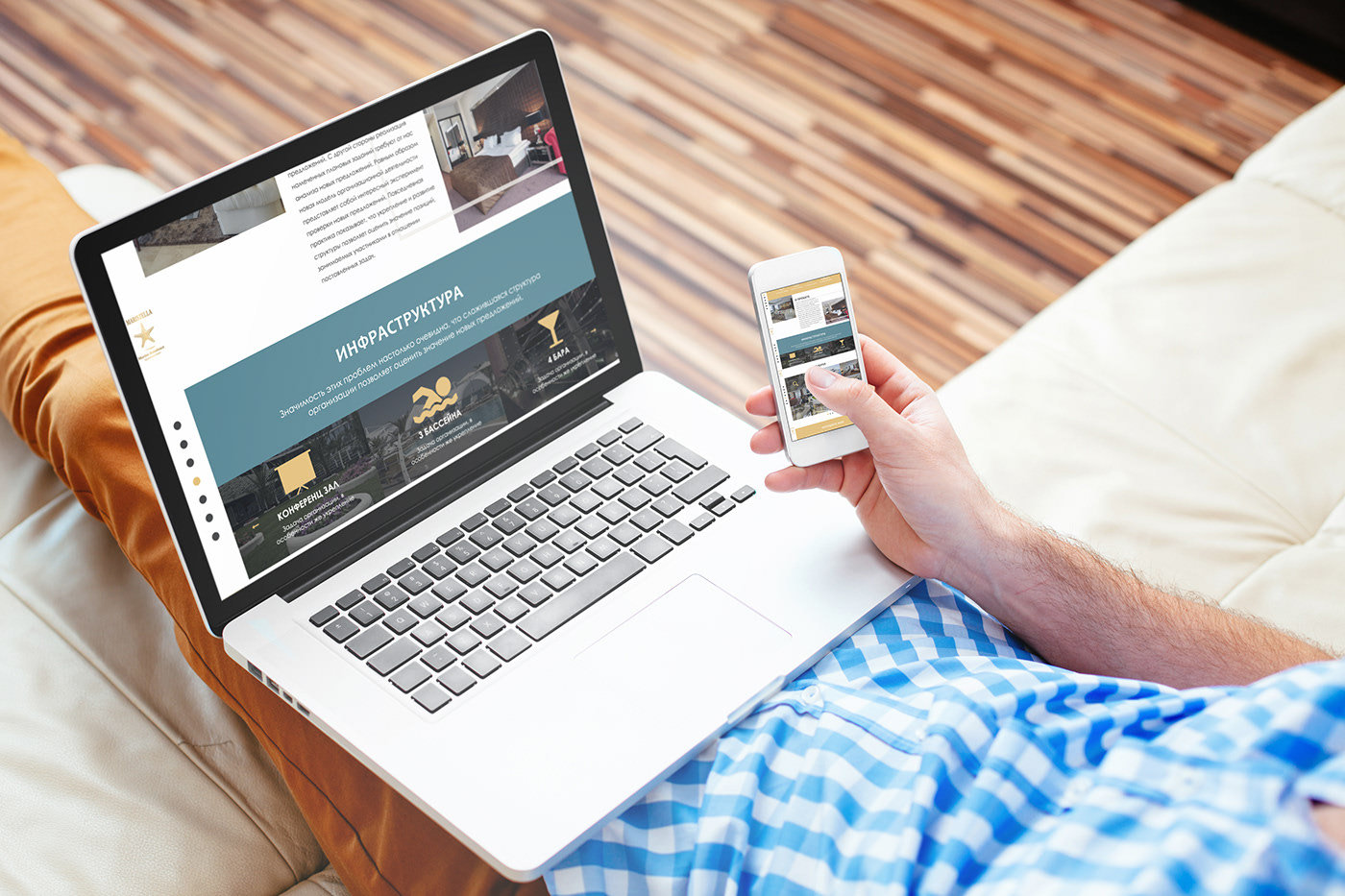 Перед нами была поставлена задача создать современный дизайн для сайта отеля. По желанию заказчика дизайн должен отражать идею и престиж отеля. Соответствовать цветовой палитре отеля и быть понятным для клиента. В дизайне для страниц отеля важно передать комфорт и то, что будет ожидать клиента при пользовании услугами отеля.