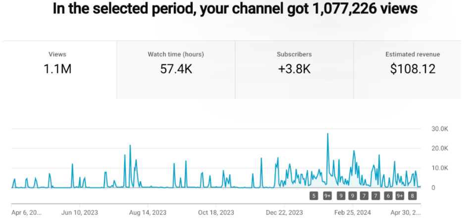 За год самостоятельного ведения (апрель 2023 — апрель 2024) канал получил: