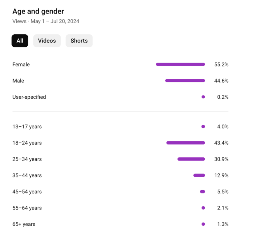 - Основная возрастная группа: 18–34 года (74% всех просмотров)