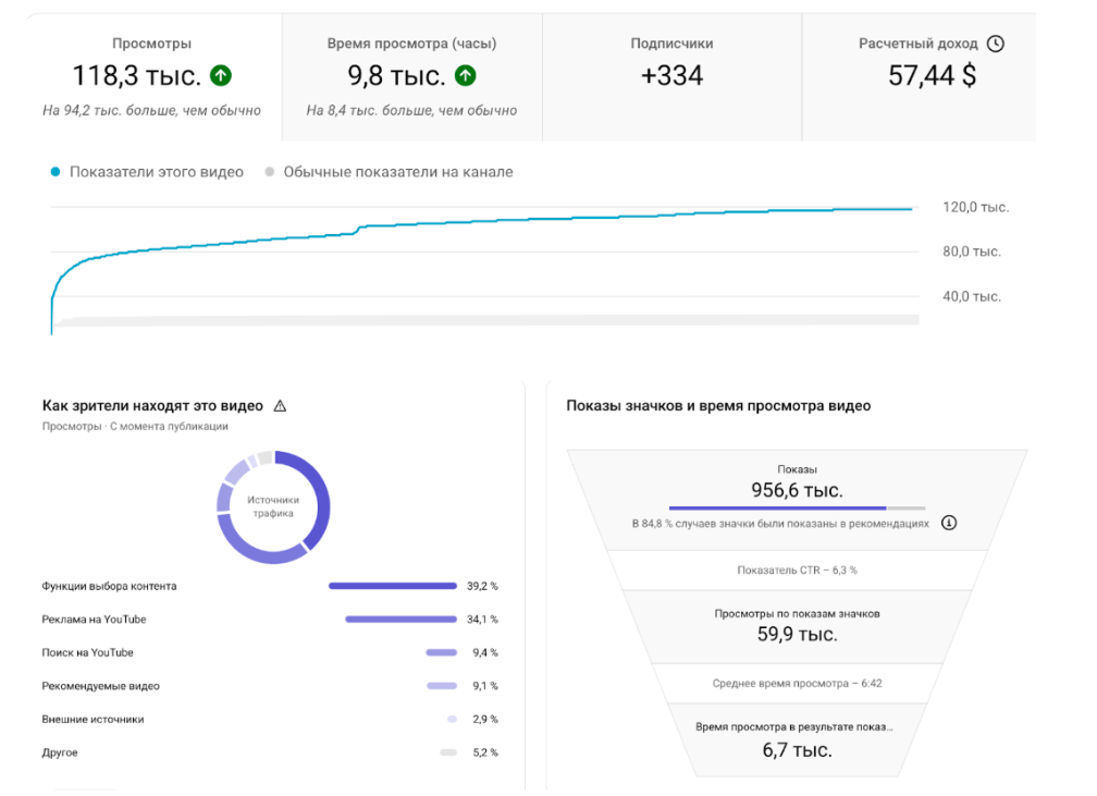 Источники трафика: 57% — функция выбора контента