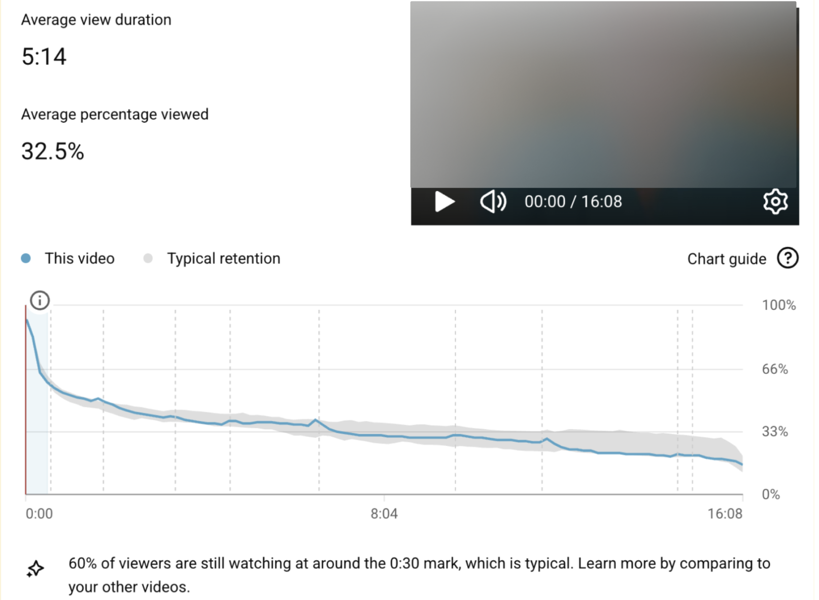 - 32.5% средний процент досмотра — показатель стабилен для длинного медицинского контента.