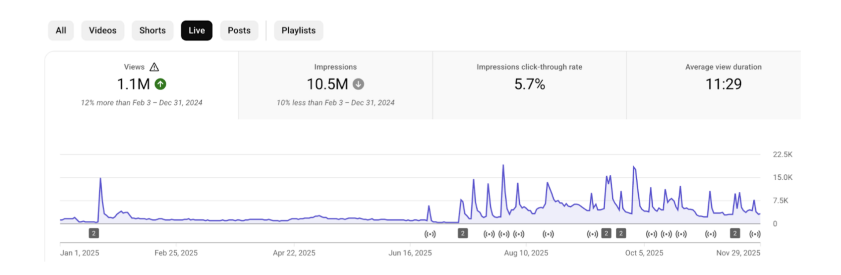 В 2025 году наша цель была не просто “поддерживать” канал, а перестроить систему так, чтобы канал стабильно рос даже при ограниченной вовлечённости клиента: обновить контент, сделать его более актуальным, использовать архив и новые технологии, усилить регулярность и разнообразие форматов (long-video, шортсы, прямые эфиры) и тем самым добиться роста по ключевым показателям на уже зрелом, крупном канале.