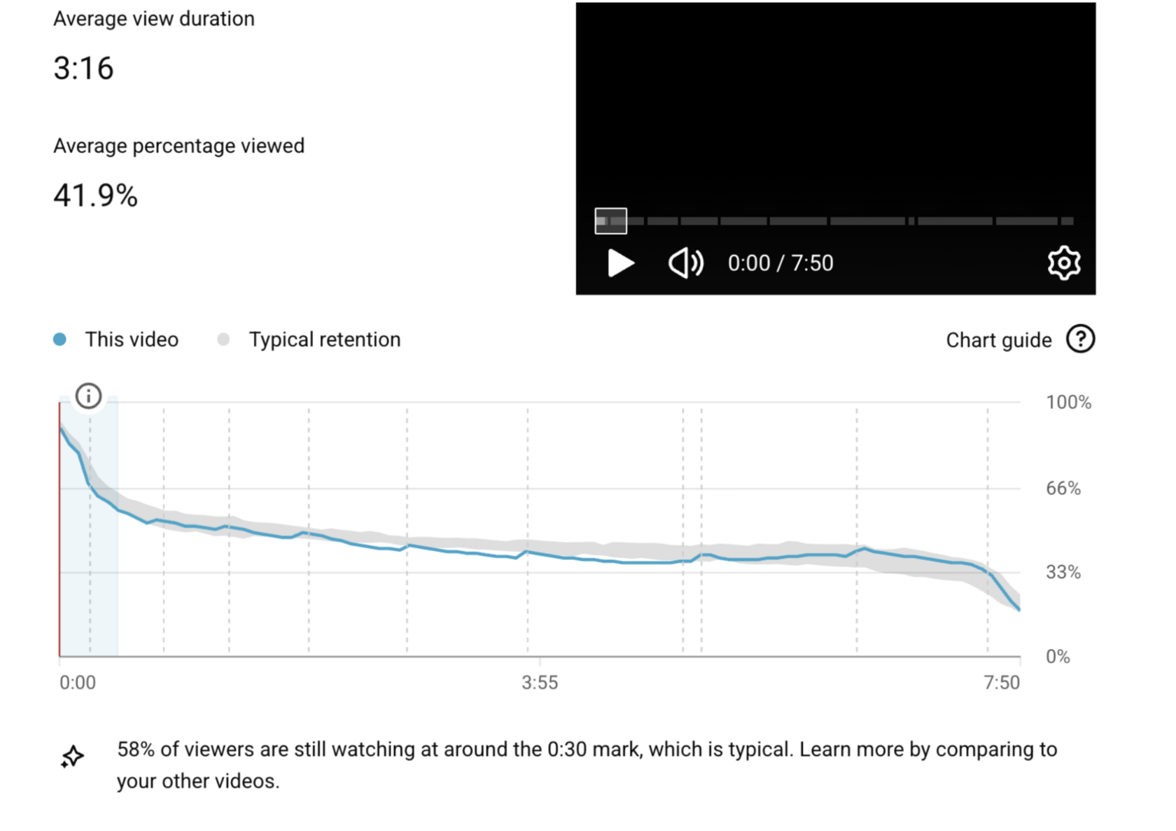 - 41.9% средний процент досмотра — лучший показатель удержания среди всех трёх топ-видео