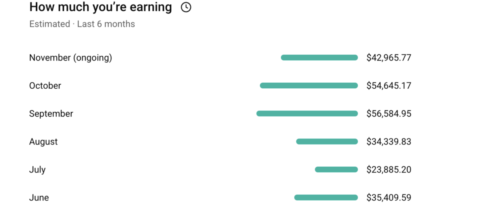 Даже без новых съёмок 2–3 месяца подряд канал держал доход от $23 000 до $55 000 в месяц. Это показатель зрелого YouTube-проекта, который масштабируется за счёт алгоритмов, а не за счёт ручного труда автора.