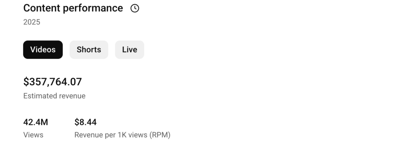 Видео №3 стало самым “устойчивым” по росту: высокая доля Suggested, сильное удержание и evergreen-тема обеспечили долгий жизненный цикл, 1.7 млн просмотров, почти 16K новых подписчиков и более $11K дохода.