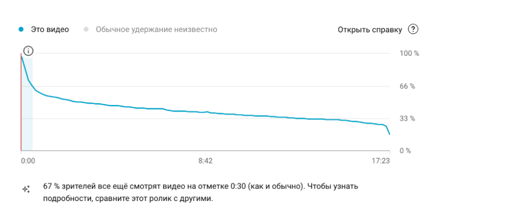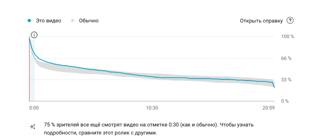 - Средняя продолжительность просмотра достигла 62% от общей длительности видео